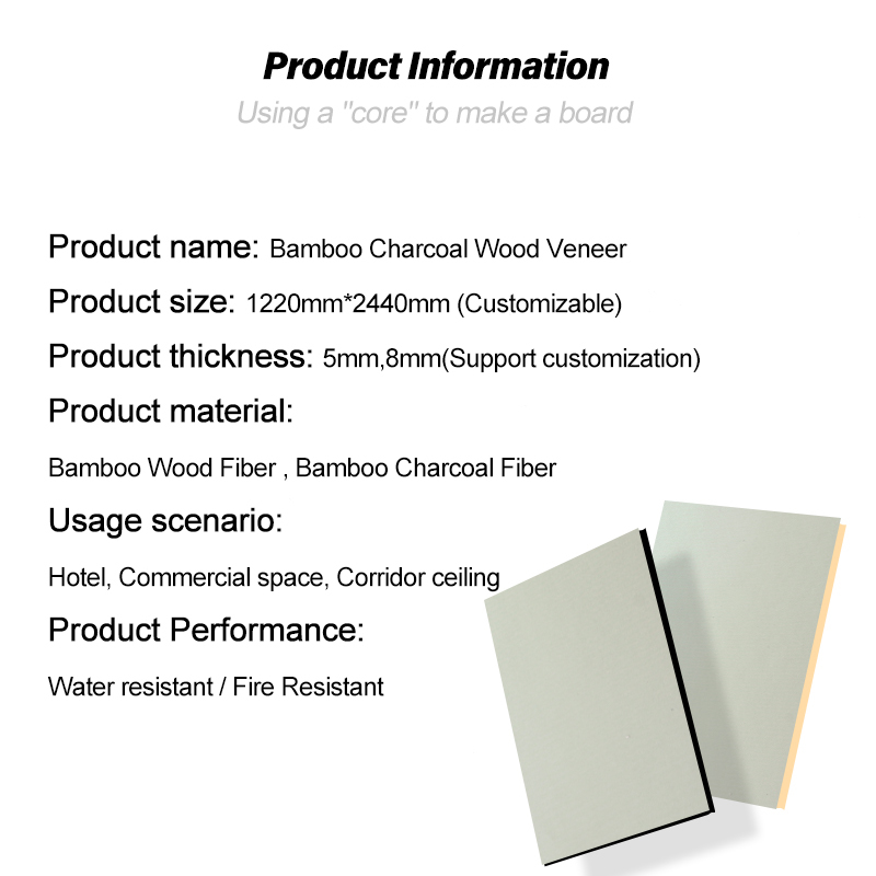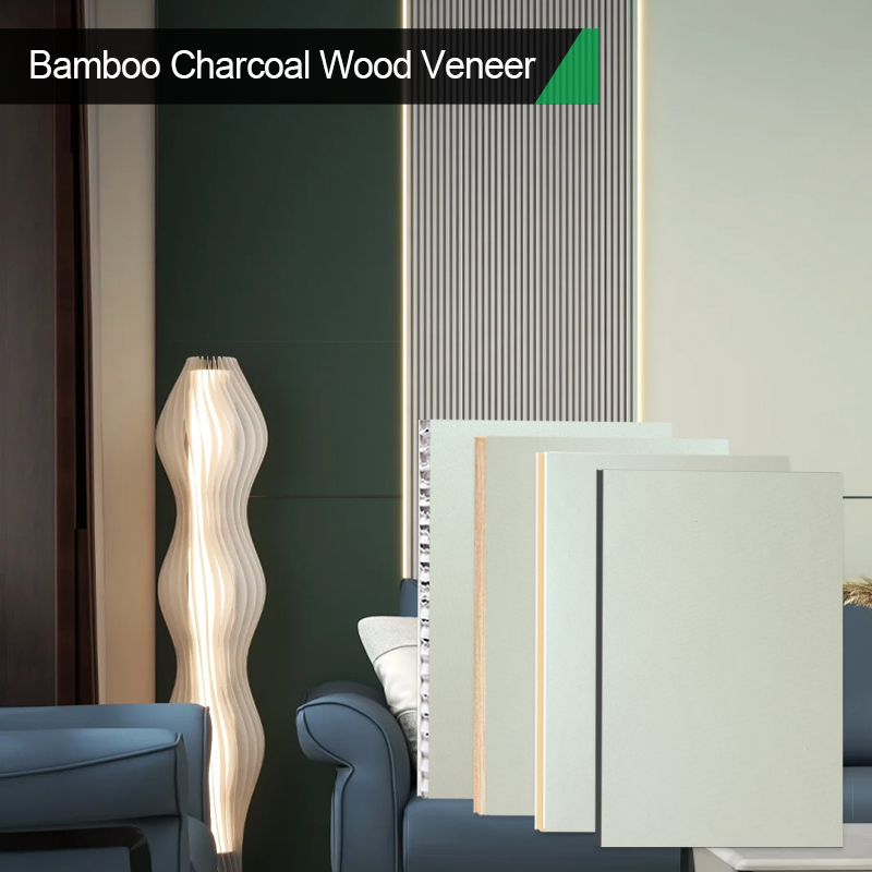 De bamboe -houtskooltextuur absorbeert en neutraliseert van nature geuren en verontreinigende stoffen, waardoor schonere, frissere omgevingen ontstaan. Door textuur schoonheid te combineren met hoge functionaliteit, bieden deze fineer blijvende elegantie en veiligheid. Belangrijkste kenmerken zijn waterdichte, vlamvertragende en formaldehyde-vrije eigenschappen.