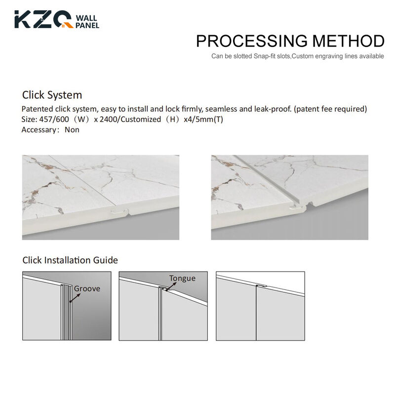 Het SPC-wandpaneel is verkrijgbaar in 4 mm en 5 mm dikte, waardoor het geschikt is voor verschillende installatiebehoeften.De klik steen ontwerp van de SPC wandpaneel tegel is handig voor doe-het-zelf installatie op de muur, en kan ook als vloerbedekking worden gebruikt.